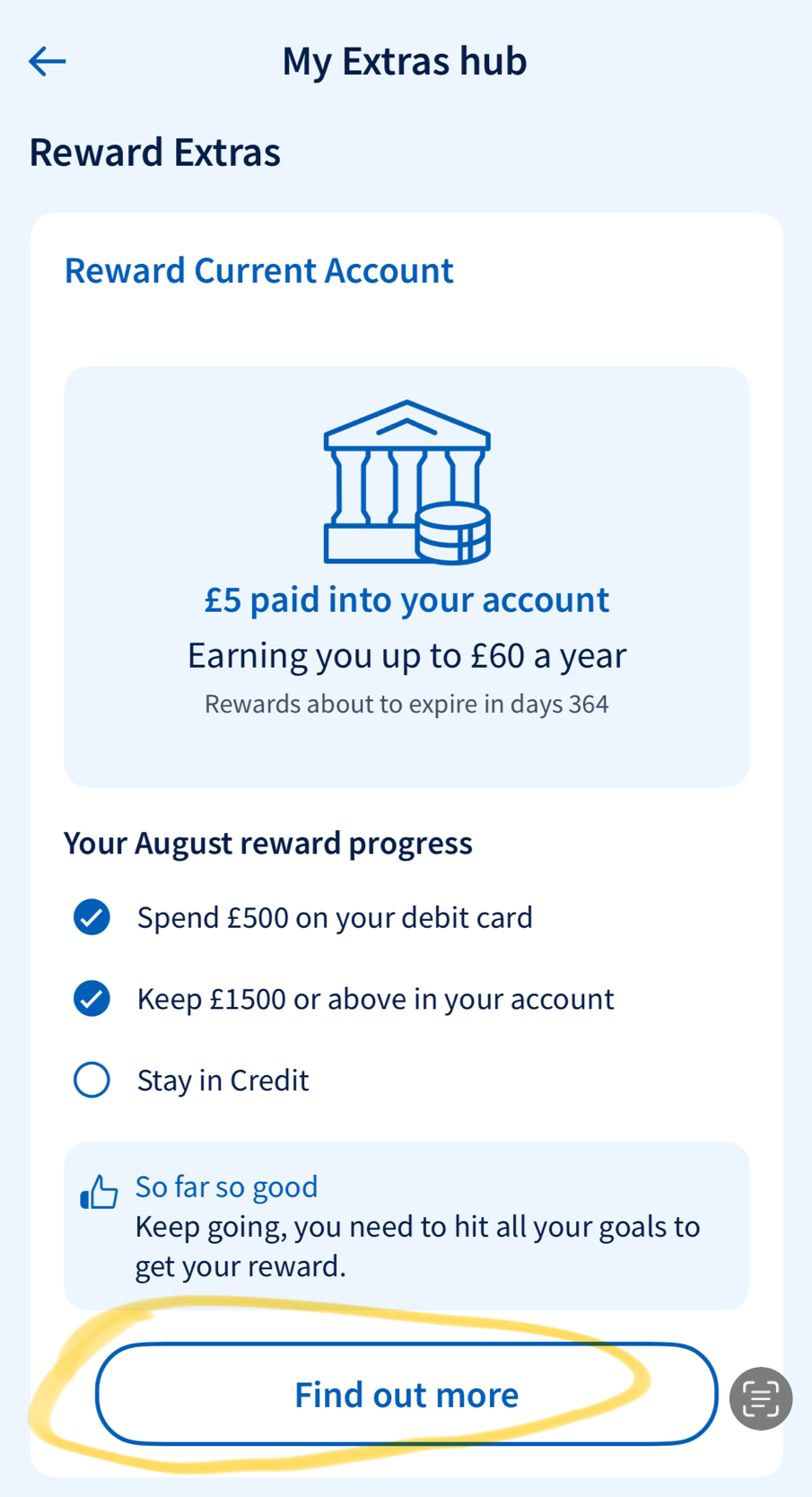 Then, scroll down the My Extras hub to the Reward Extras section then tap Find out more. You should then see the original Reward Extras Tracker, as it used to be when you could find it with ease.