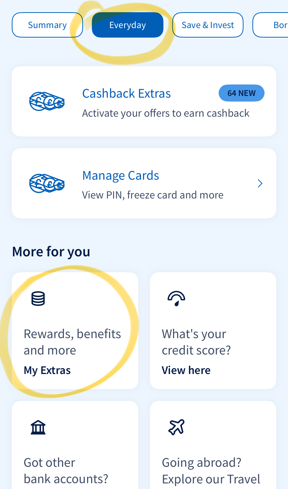 If you tap Everyday, then Rewards, benefits and more.