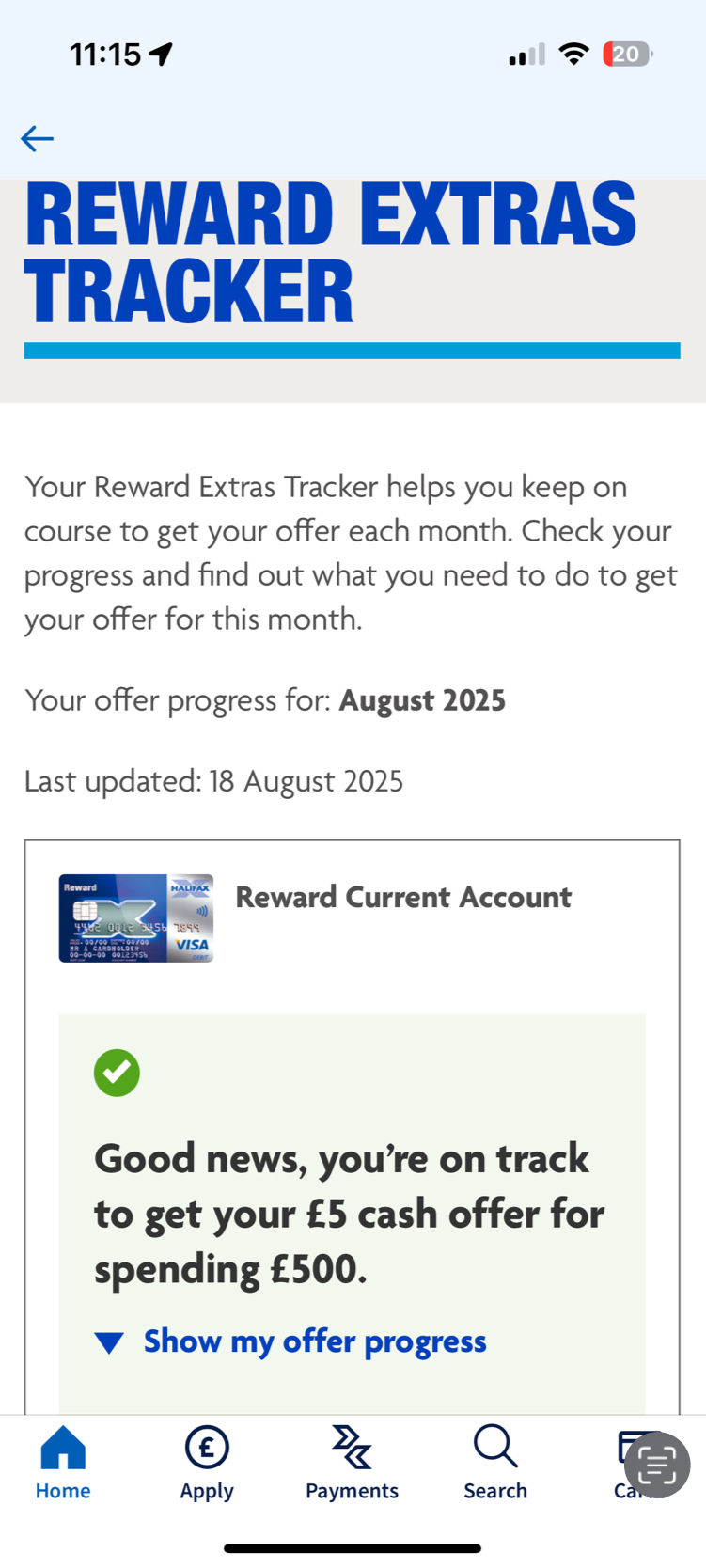The reward tracker appears to have disappeared from the Halifax app.0