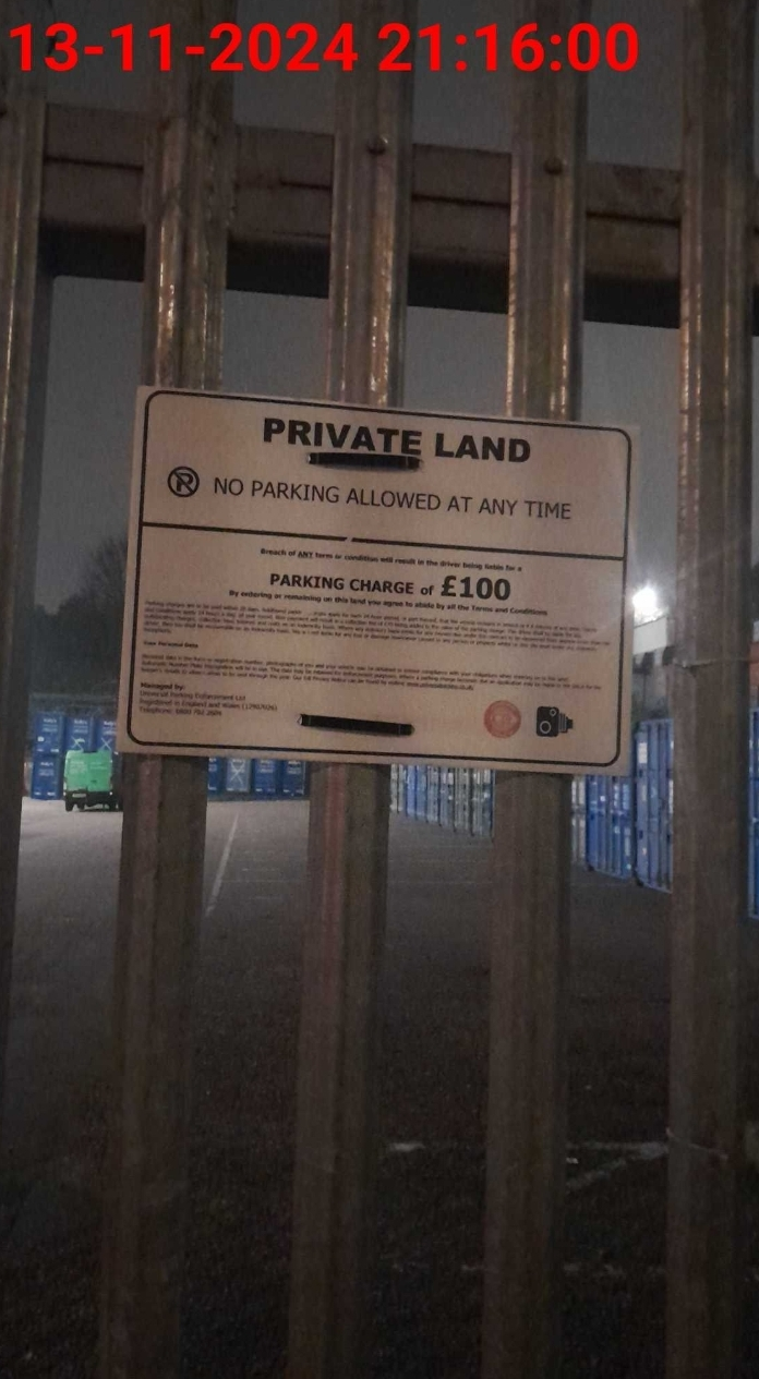 The Notice is on the gates leading to the car park, while I was not in the car park, but on the driveway leading to the car park. is this enforceable?