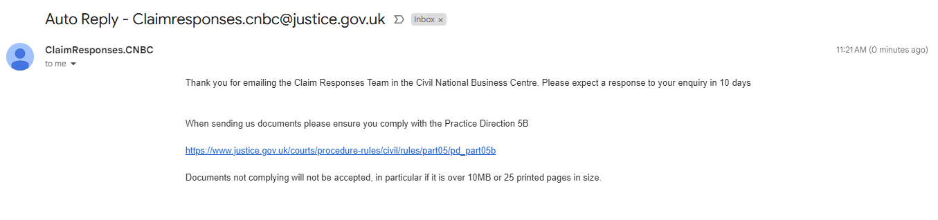 Is this the normal 'acknowledgement' email that you receive when submitting a defence?