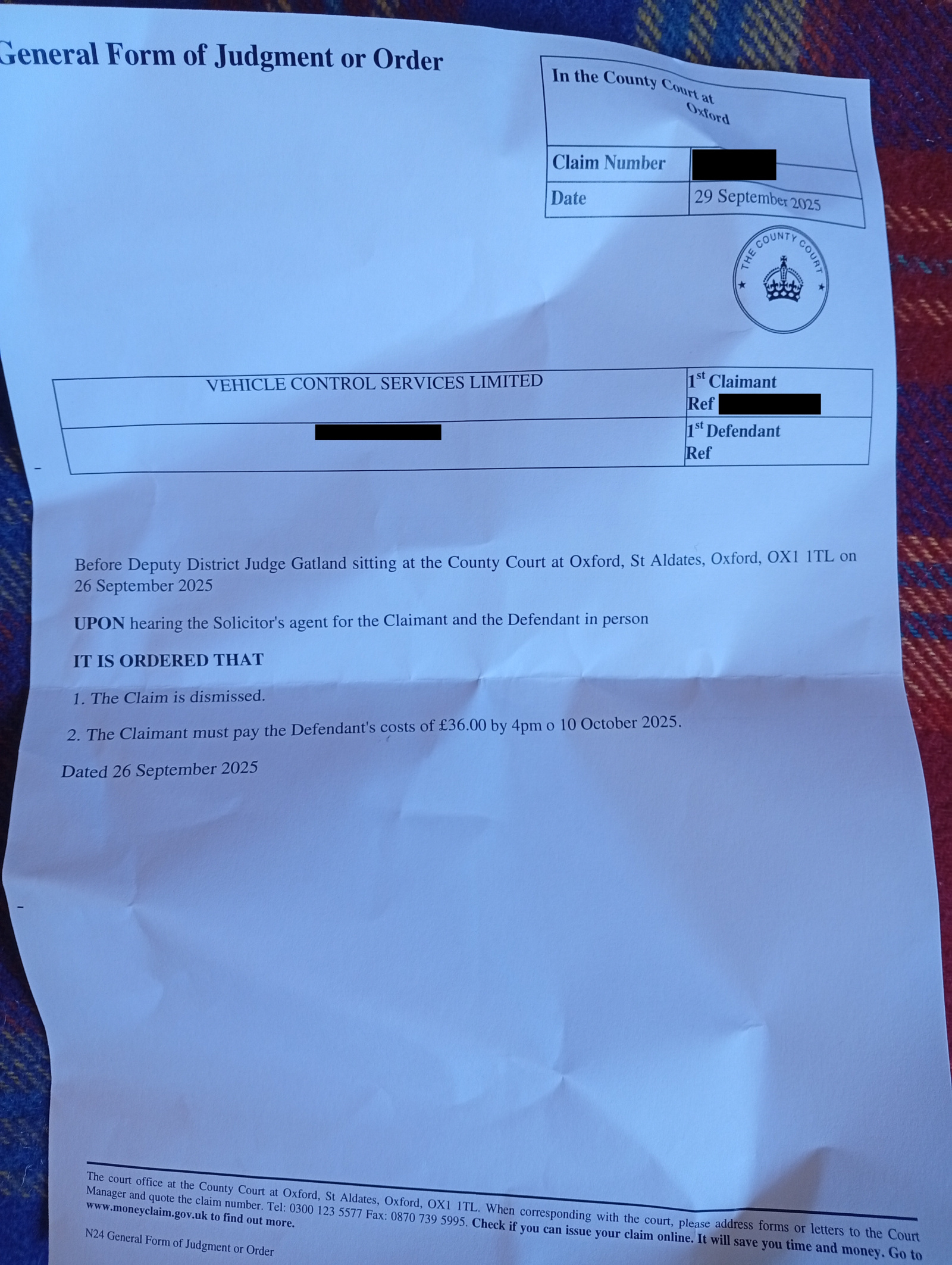The whole thing got settled in 30 mins. I barely spoke, it was more a conversation between the Judge and VCS' solicitor. I was awarded £36 in loss of earnings to be paid by VCS in the next 14 days. After the hearing, VCS's solicitor asked for my bank details for payment. She was nice and even apologised for what I had to go through in the past year, I even felt bad she has to work for such horrible people.
