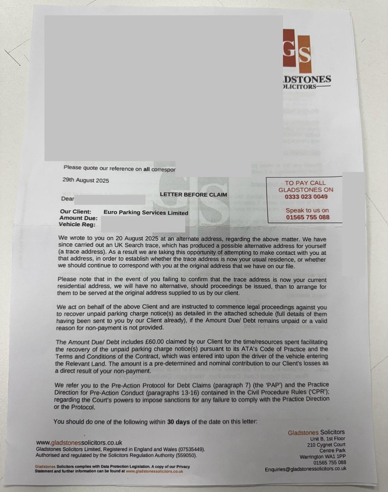Le_Kirk said:Gladstones is the solicitor acting on behalf of Euro Parking Services so you reply to Gladstones
