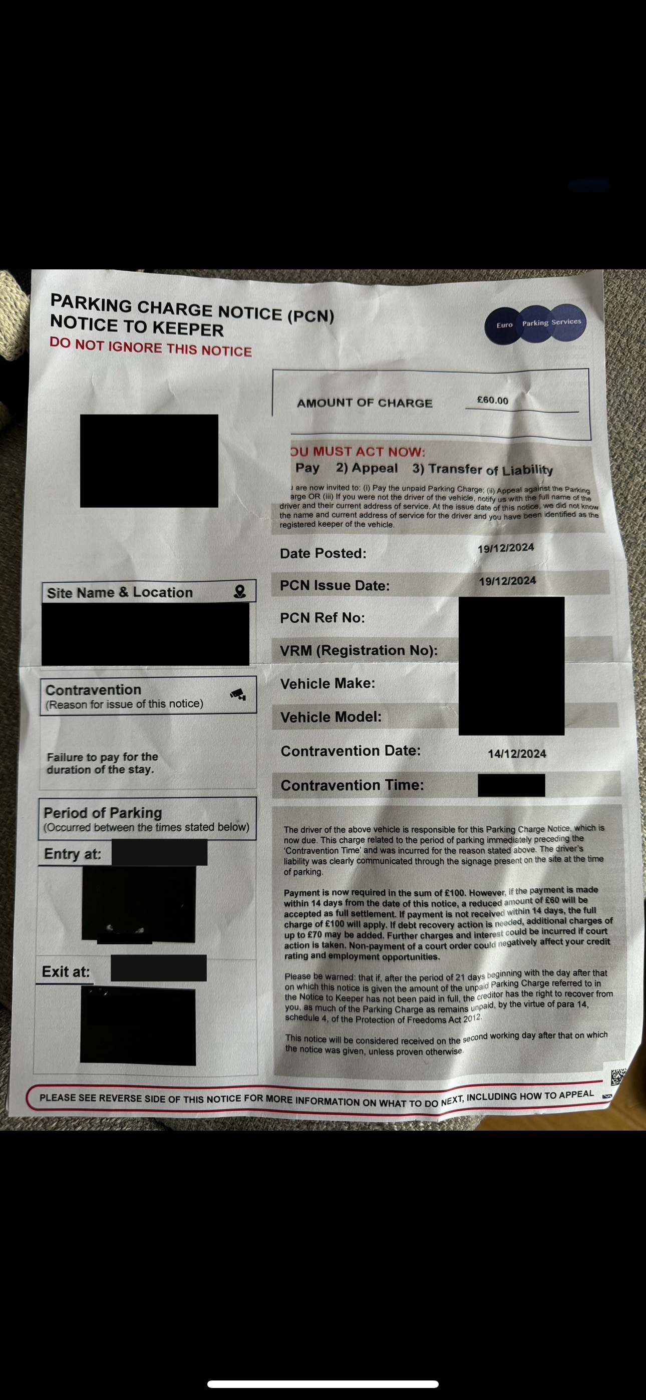 __bc1 said:I have now received a letter before claim.__bc1 said:So there was a total of 4 PCN’s billed by Euro Parking Services.