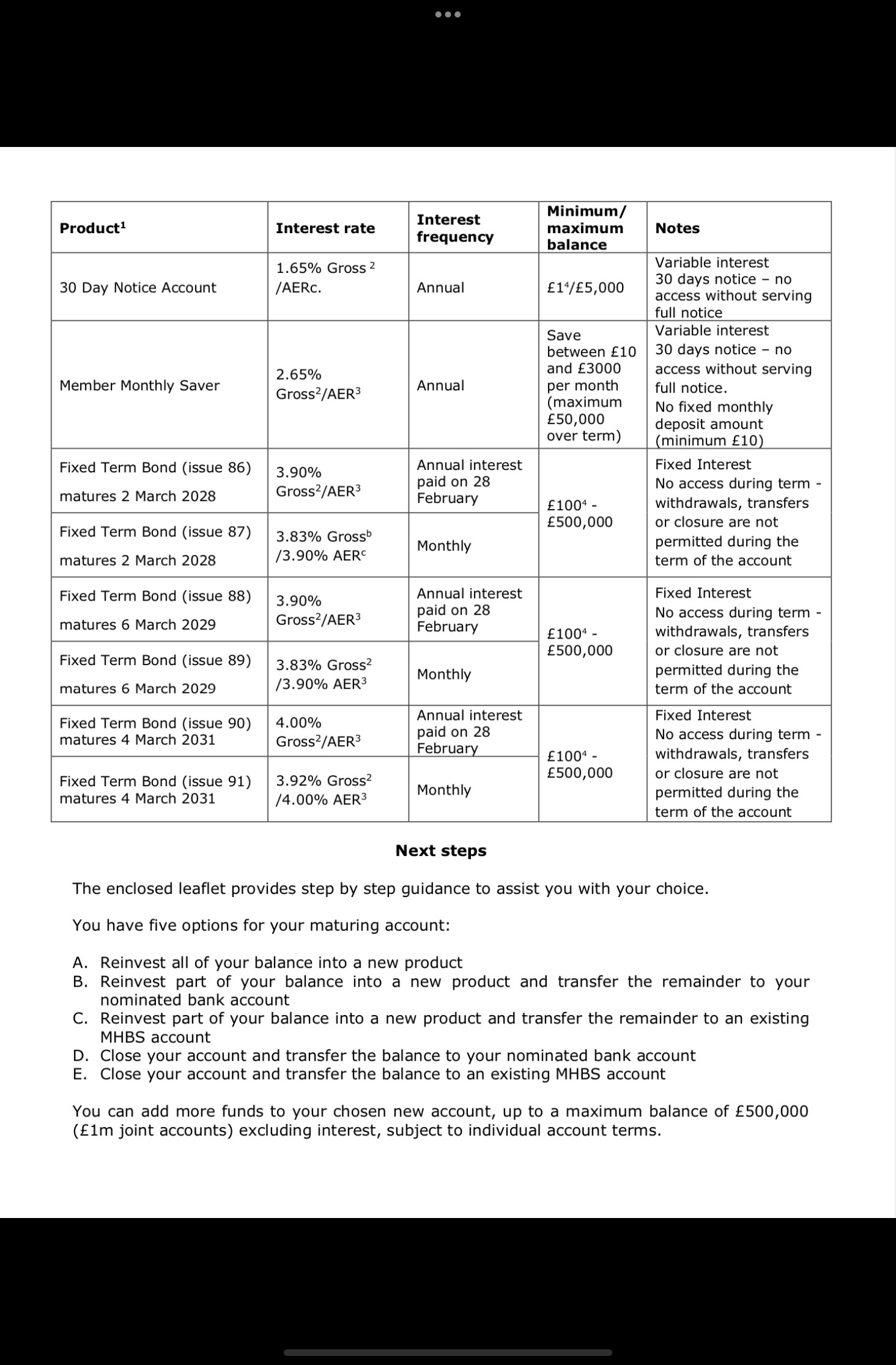 MHBS Fixed Term RS maturity - disingenuous of them and not much show of loyalty to not offer the obvious follow on savings product ie another Fixed Term RS when they are currently offering a competitive FTRS (30/11/26) @5.8% fixed no withdrawals or early closure which is only available in branch.
