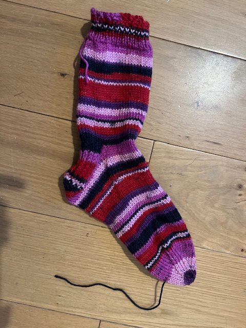 < sigh >. At least I can report that the sock fits, but I’m still debating frogging and reknitting on 3mm needles. I have at least 2 sets, but can I find them???