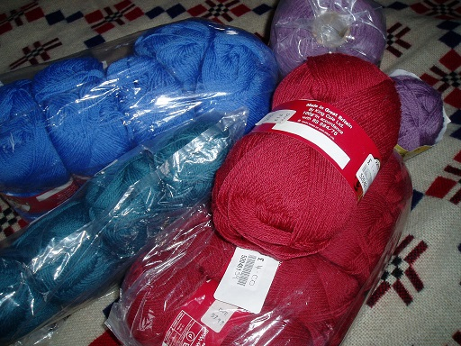 A gorgeous shawl, Pipney. I have no will power when it comes to yarn. I was drifting round a local hospice charity shop, waiting on the OH, (hair cut), the other day. Look what came home with me.....