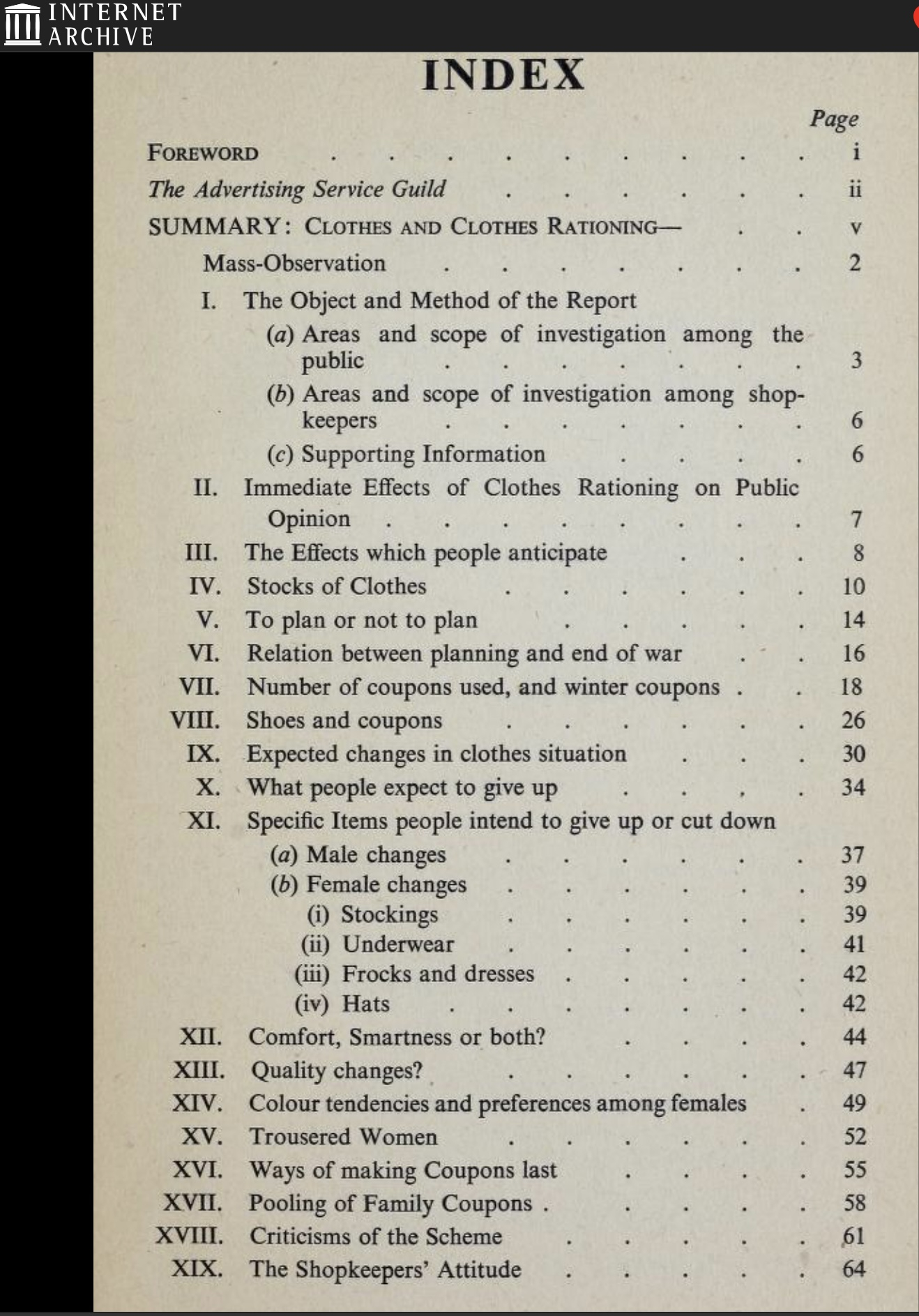 “Clothes rationing survey; an interim report prepared by Mass-observation for the Advertising service guild.”