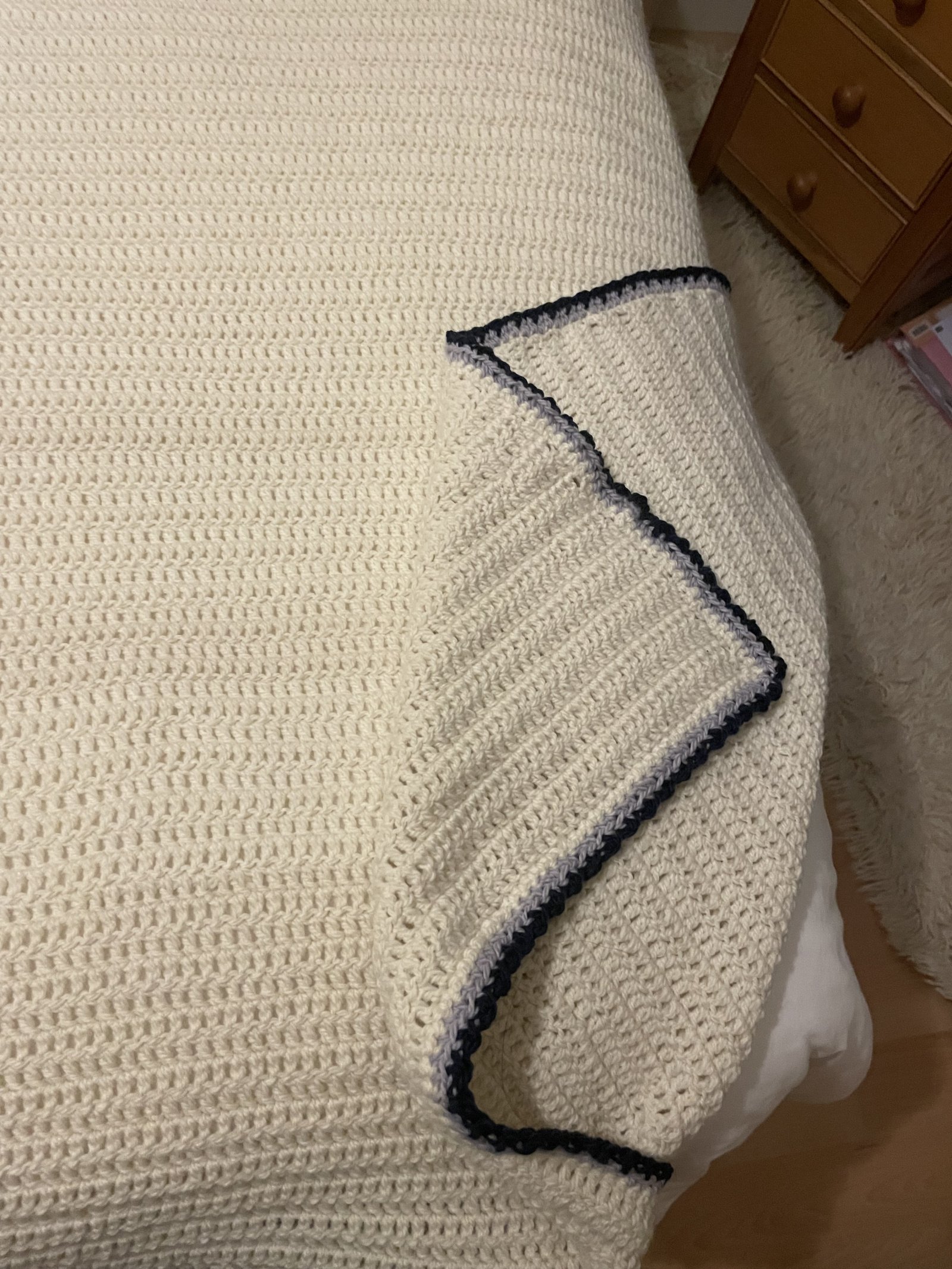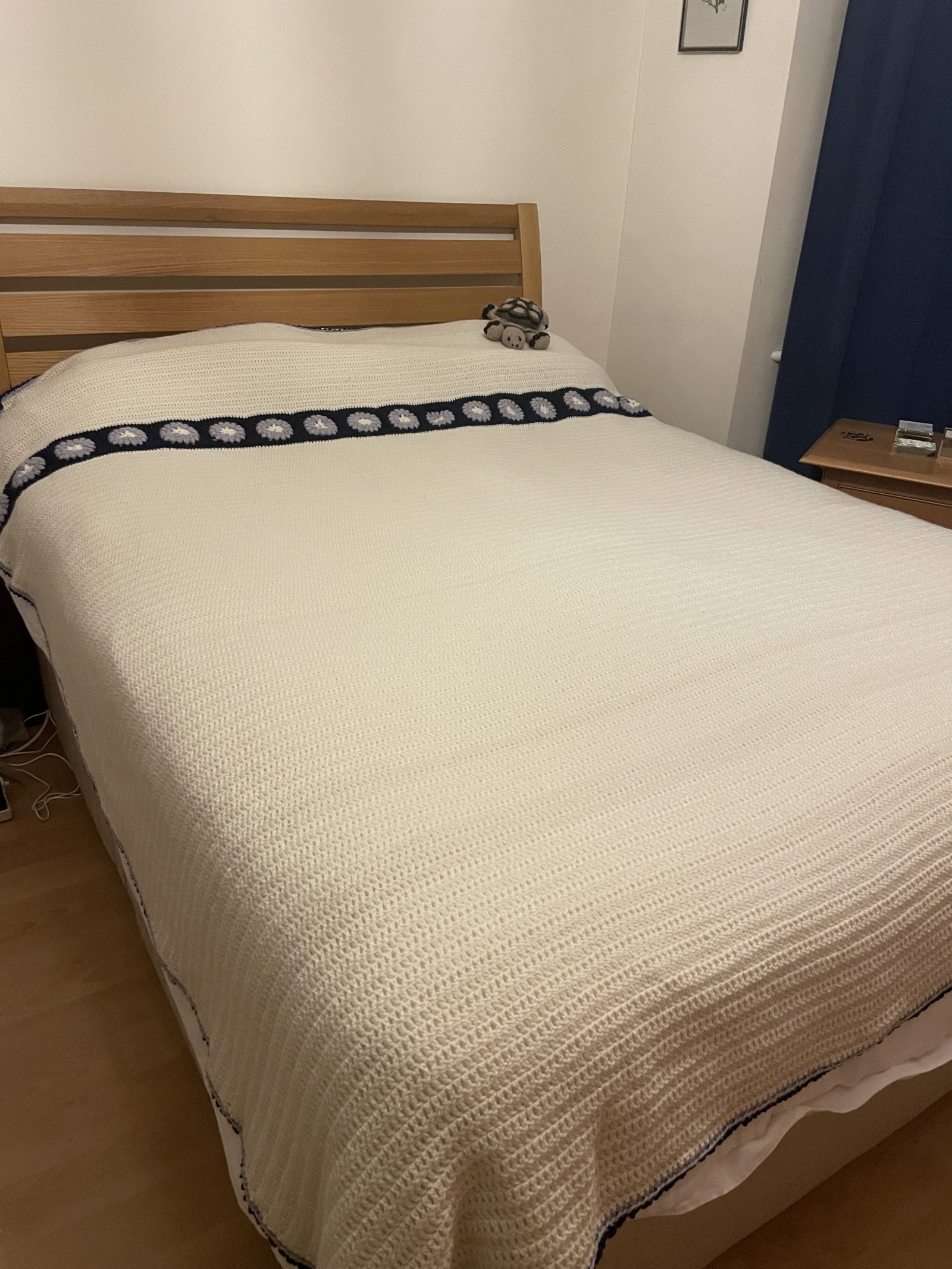 The blanket looks wonderful @Gem-gem. I am really impressed. My largest crocheted blankets are about 2/3 that size. Made them for my own bed and for most of my relatives while waiting for people at doctor's appointments. It is very time-consuming as well as yarn consuming.8