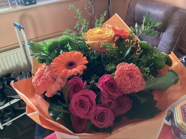 Now that I am up I should really make a concerted effort to catch up with the cheerleading … distracted by another knock on the door…. T has also sent his mum some flowers 🥹 Photos below