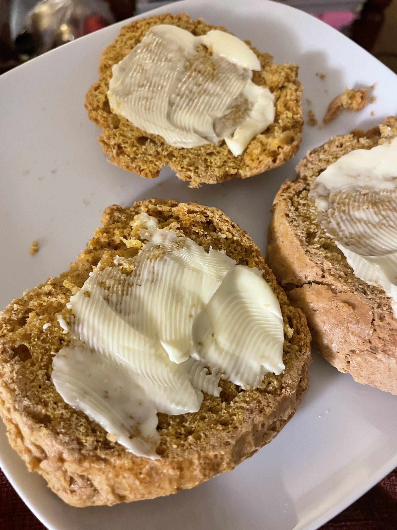 Decluttered 3 chicken breasts which should have been in date but were decidedly ‘off’. Have cranked the fridge knob so it’s colder in there but it did mean the chick casserole that I’d been looking forward to was off the menu today.Decluttered 2 leeks, some smoked haddock fillets and the tail end of various bits of grated cheese from the freezer and made a haddock and leek macaroni cheese instead. It was delicious (the recipe has been stuck to the fridge door for….a while).DSis and I made some pumpkin pie scones (recipe 4/50) which are also delicious.