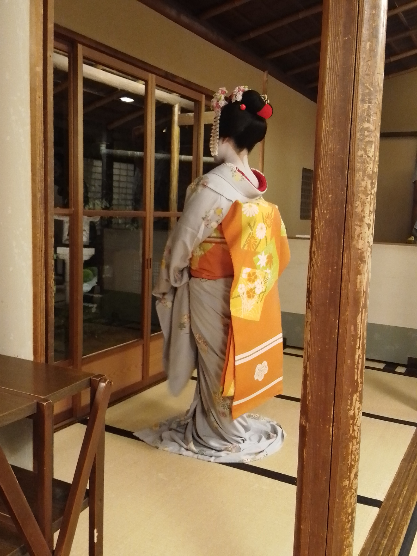 We had a dance performance by a maiko (trainee geisha) in Kyoto. Her outfit was 7 metres long and was so long it would wrap around her feet while she danced. We had a chat with her through our interpreter. She had left school and her family home to live in a home where she was paid an allowance by the "Mother" of the house whilst she spent all day learning the etiquette and standards for being a trainee geisha. This training would last until she was 20 when she would become a geisha. She had chosen this life and said she was happy. She was 15.