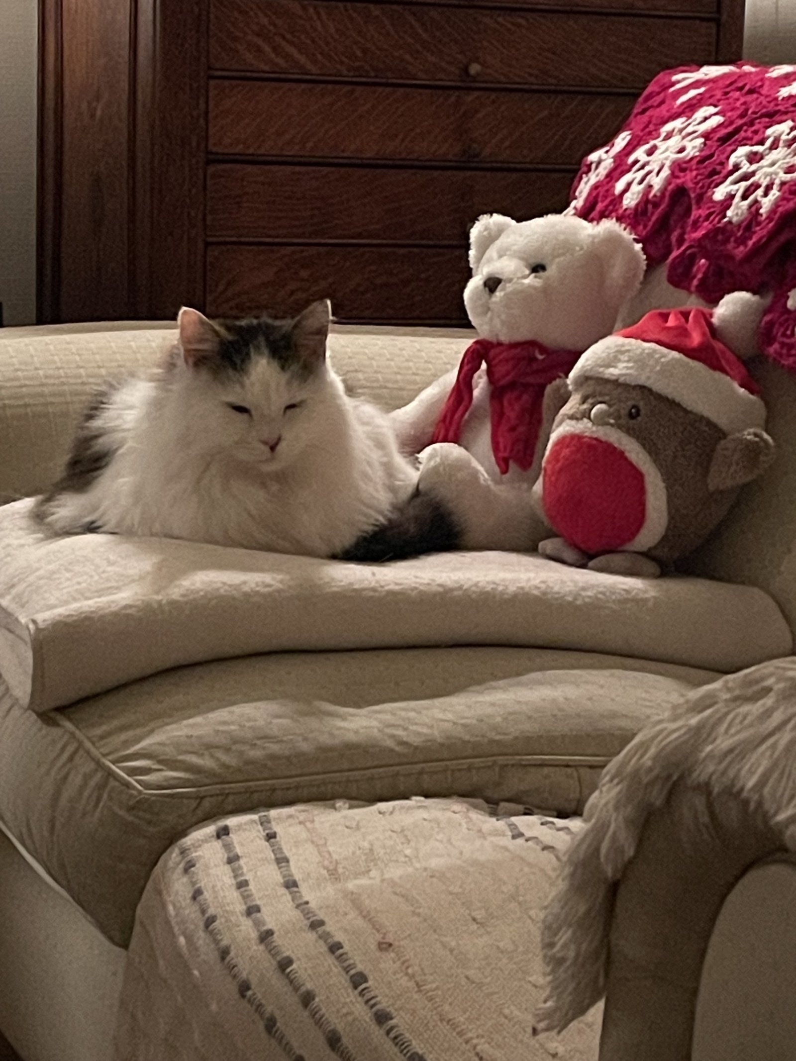 Morning all. Moved things around to accomodate Christmas tree and think I now have two tables/desks which I will not put back. May see if DIL can sell them. I'll get a picture and some dimensions. Yesterday started with a literal cat and mouse game as Sox came in with his first mouse. Pretty little thing and seemed unharmed although probably terrified. After a bit of a chase I caught it in a teatowel and released it away from the house. I hope it survived. Sox was very unhappy and spents hours searching for it. Seems to have forgotten about it this morning.