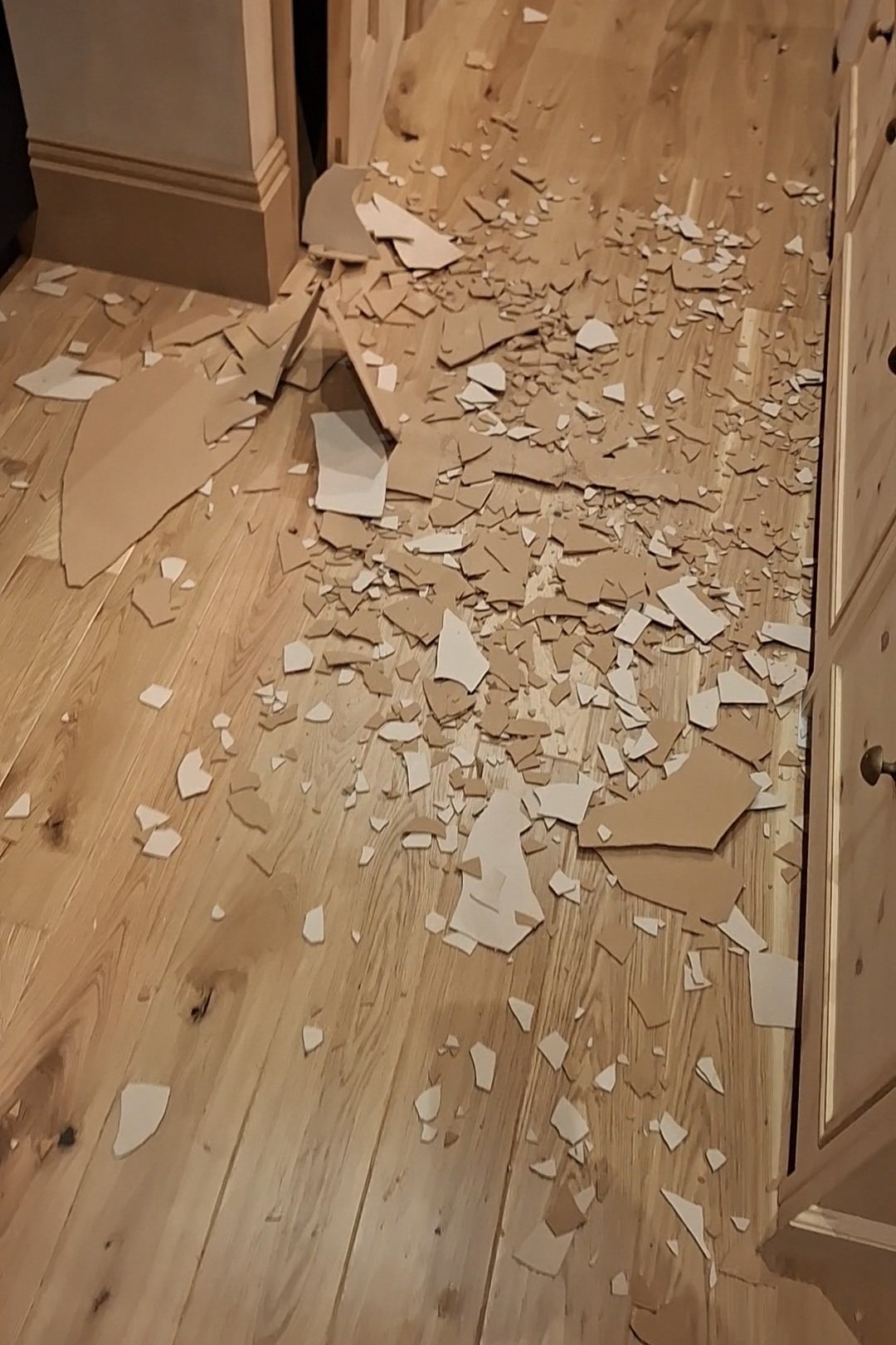 Chris pulled down that loose bit & made their builder aware, (he's very apologetic) and luckily there seems to be no damage to the new units, hob & quartz worktops. I went into "mum" mode cleaning up while Meg sat down with a cup of tea!2021 Decluttering Awards: ⭐⭐🥇🥇🥇🥇🥇🥇 2022 Decluttering Awards: 🥇