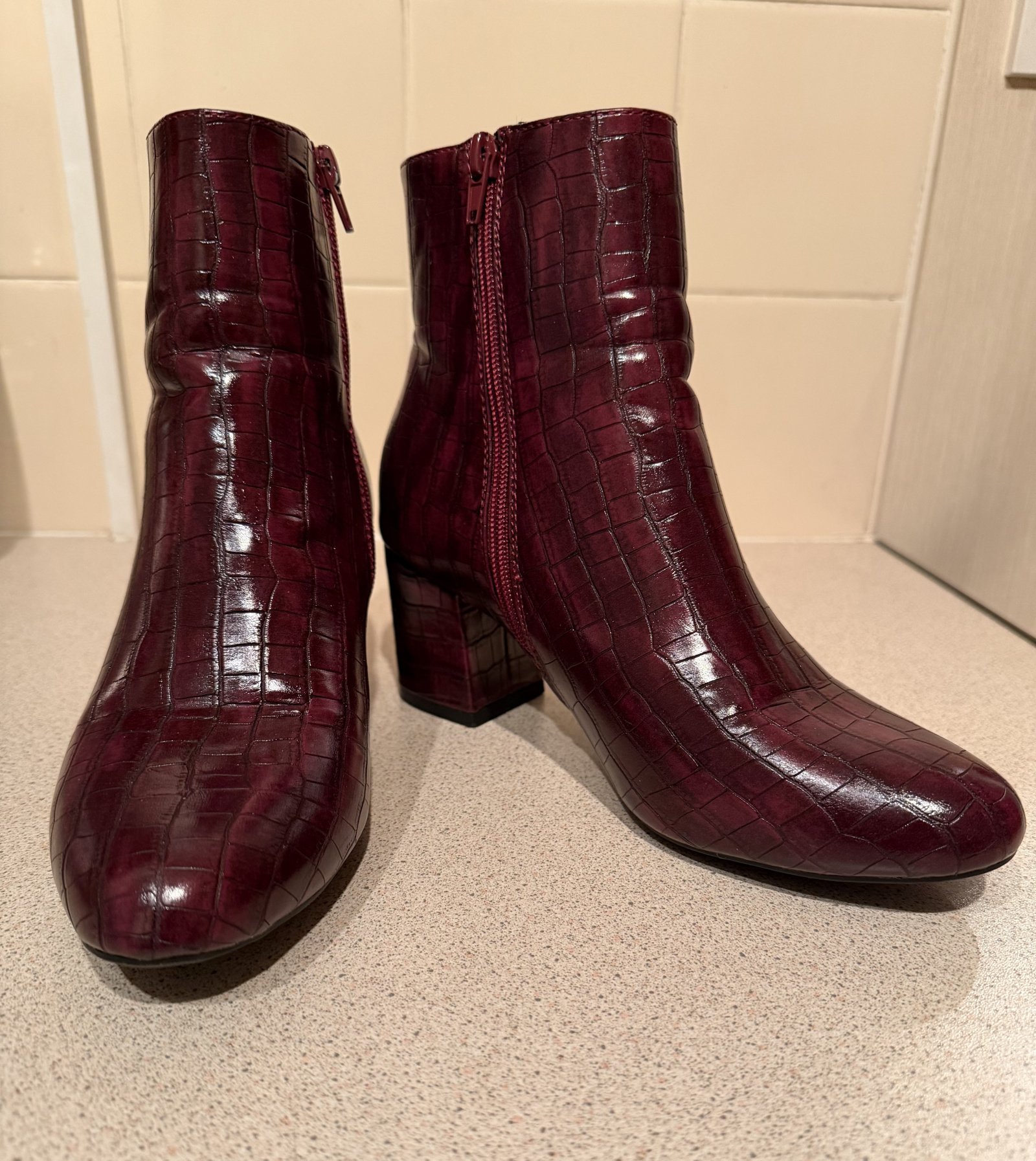 Very worthwhile trip to Otley today. Came home with a pure silk Reiss shirt/top for 99p. It has a small mark on the front that I hope will come out with WUL or a Stain Devil. Label says DryClean only but pffftt to that! Also got a seemingly brand new Hobbs dress for an unbelievable £4 from the Mind shop. At the weekend I bought a floaty chiffon dress in rather drab shades for when I want to fade into the background. From BHF for £12. Also found the pair of ankle boots I have been searching for for ages, burgundy £7 in CRUK Northallerton. Bit of a spendy week! 🙄