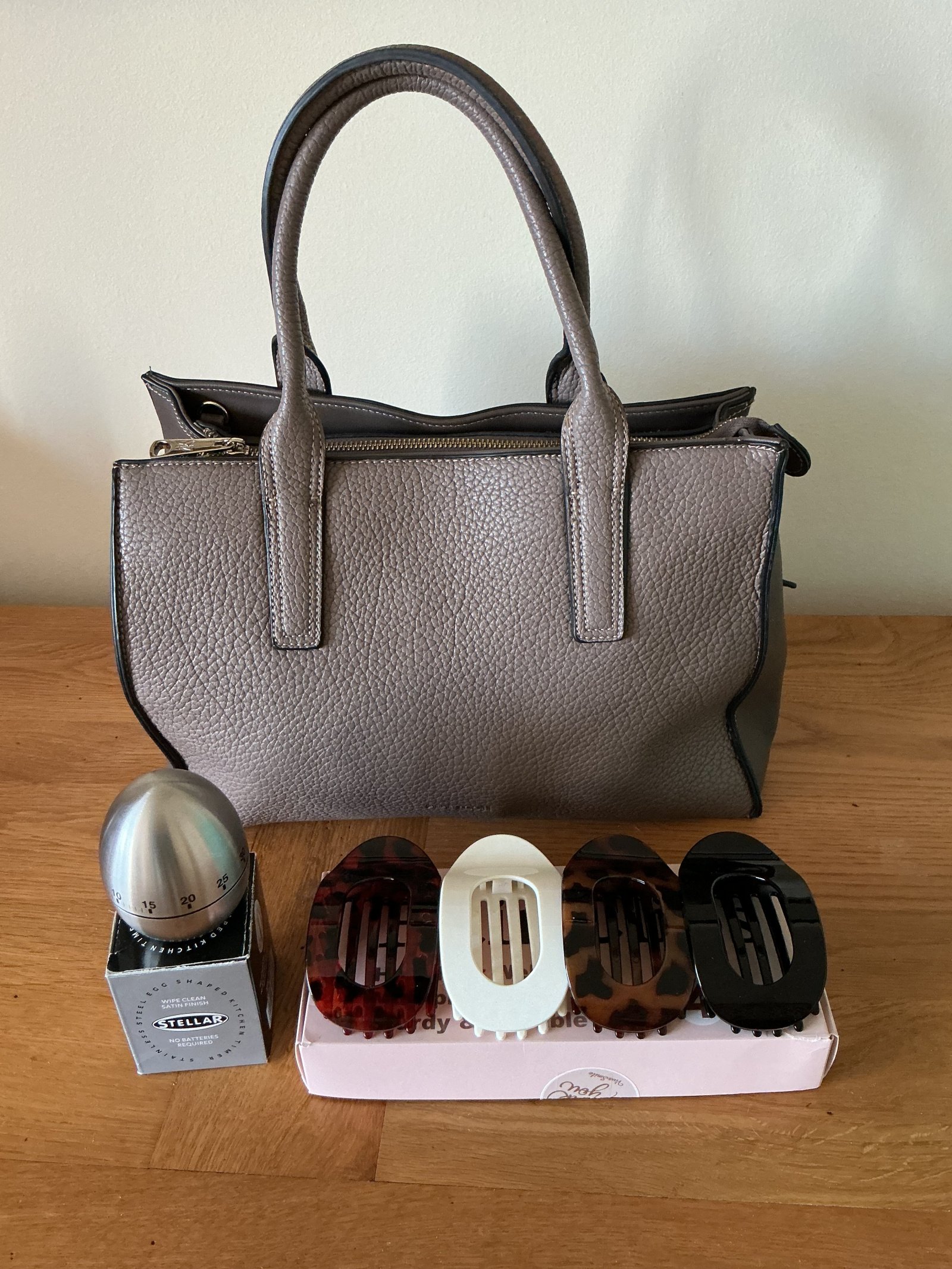 Today’s chazza tour of Northallerton….came back with a mushroom coloured bag, not leather but useful to use in the rain, £6, a Stella kitchen timer, £1.95 and a box of 4 hair clippy things for £4. Soz can’t remember what came from where and I’ve lost the receipts 🙄