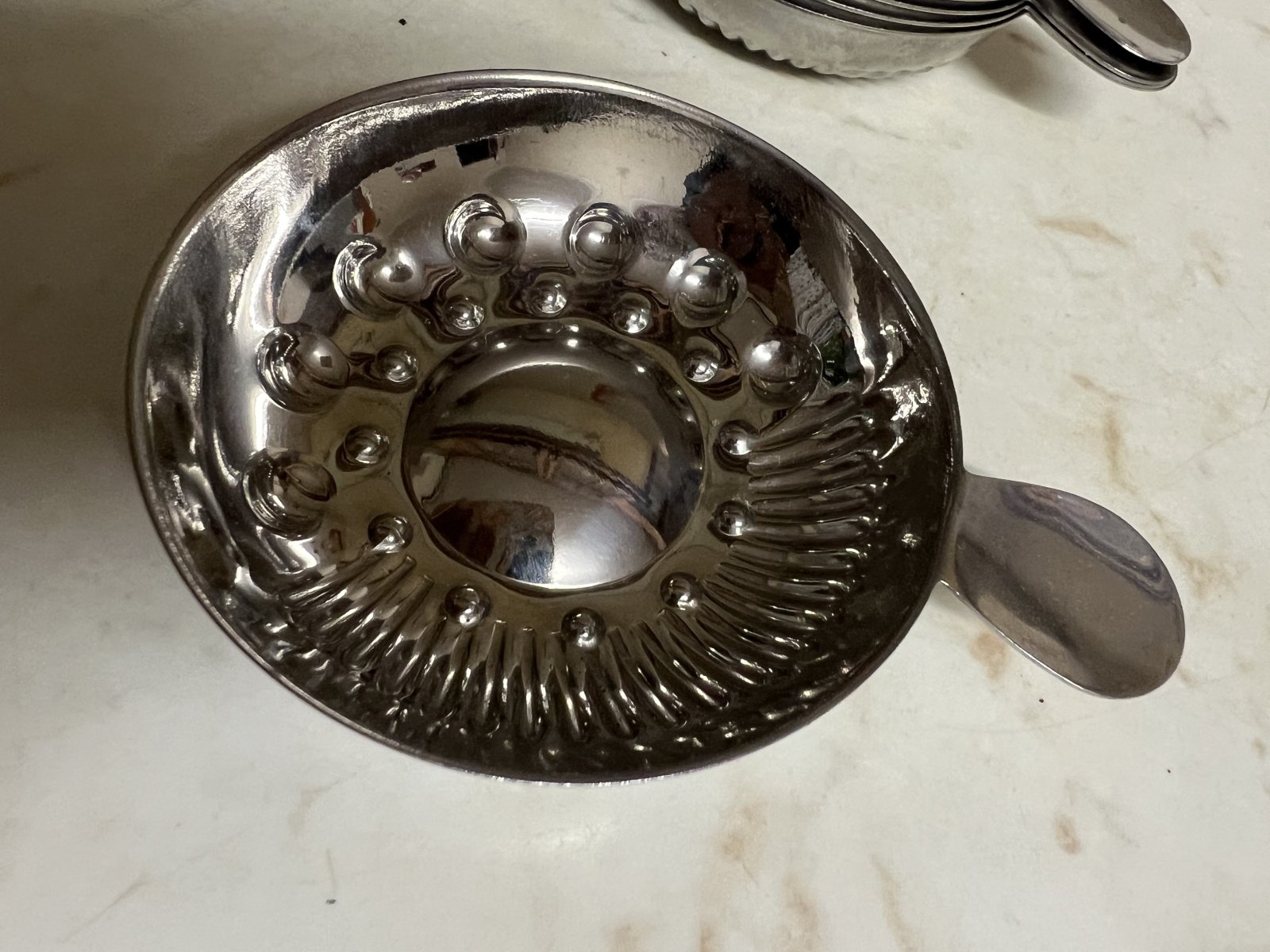 I also got a set of 5 of these stainless steel items for £1, thinking I could use them as serving dishes for nuts and other small nibbles. They are actually sommelier / tastevin cups - and the online prices are faintworthy!: https://armchairsommelier.com/learning-wine/tastevin-cup/