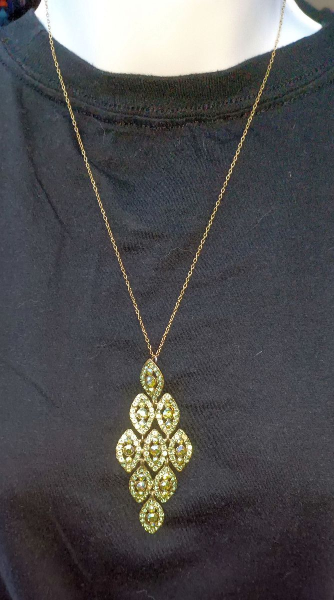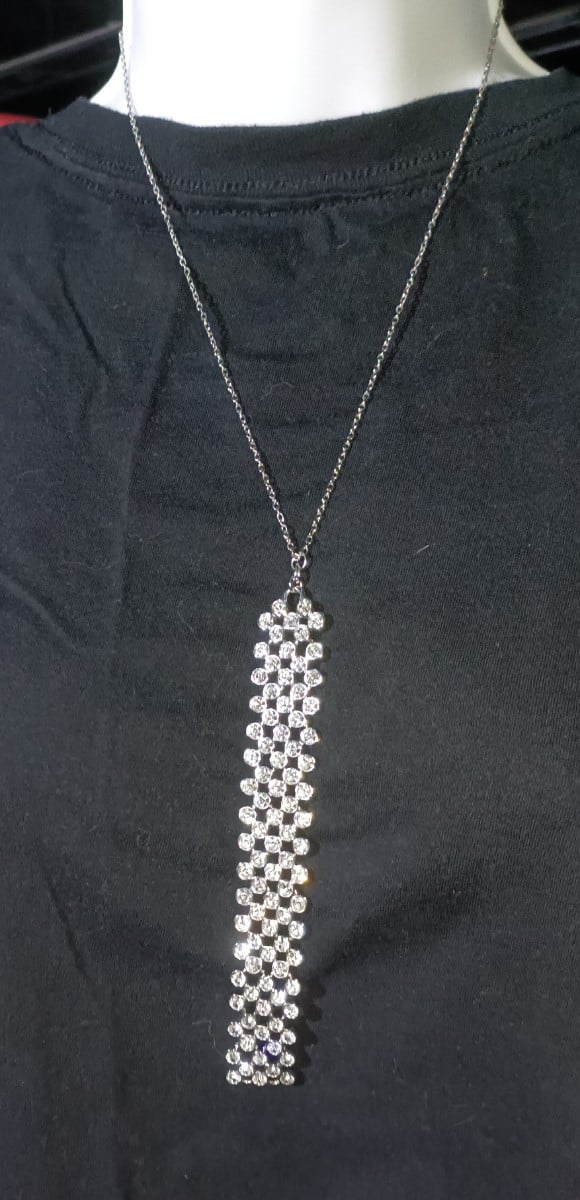 The long diamante necklace was part of a bracelet. It took some effort to remove the loose pieces as the metal was very thick. I added a loop and a chain.