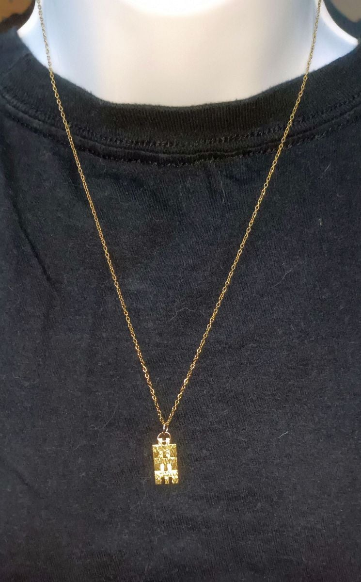 The small gold pendant was a piece of a watch band. I added a couple of loops and a chain.