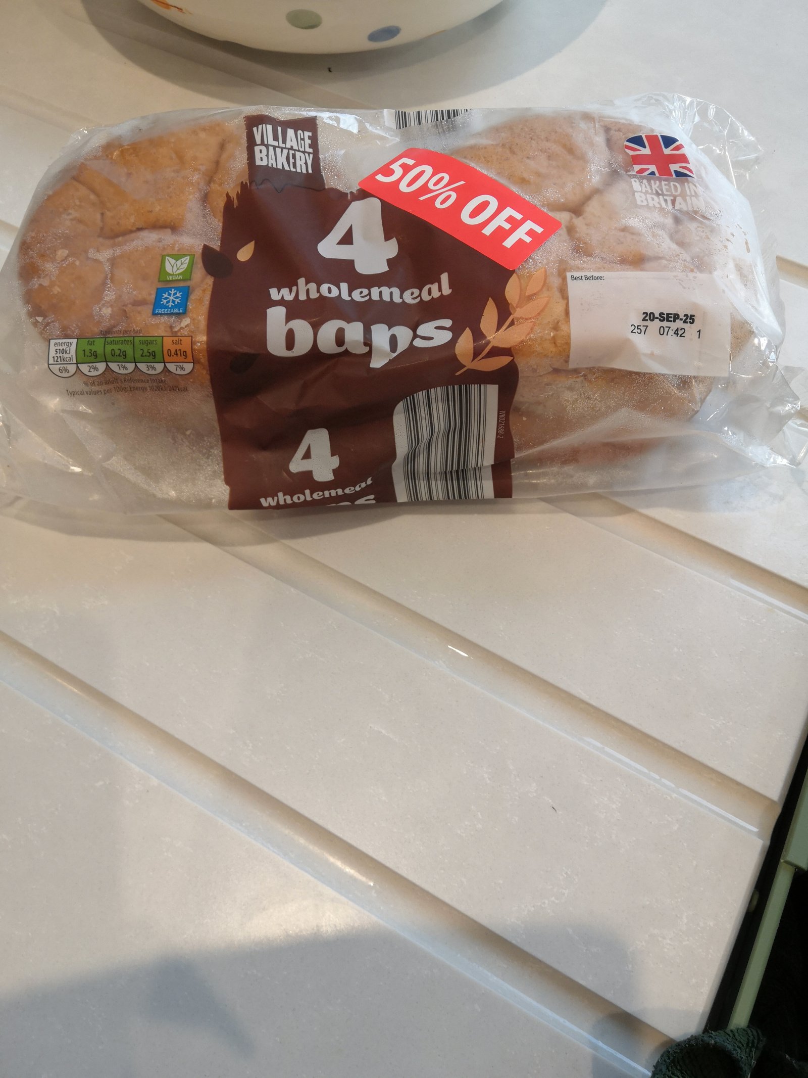 The baps I bought this morning were win/win. I'd parked in Aldi's car park in the next town so I needed to buy something to make the parking free. I went to buy some baps and delighted to see 50% off! @bubbs will be proud of me. 😁