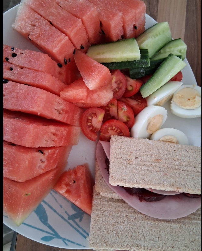 dinner - salad and ham sandwich heb in cafe….(it was Morrisons wholemeal bread…the cafe owner is doing SW 👍) 2 syns of spread