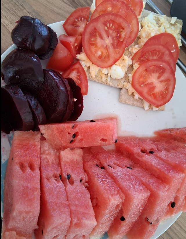 Lunch was lovely - very filling though so hoping I don't slump into a food coma. Also had half a baby watermelon for my sweet hit. Not all that keen on WM but bought it for DH to have for breakfast and it's sat in the bowl for 2 weeks, so it needs eating.