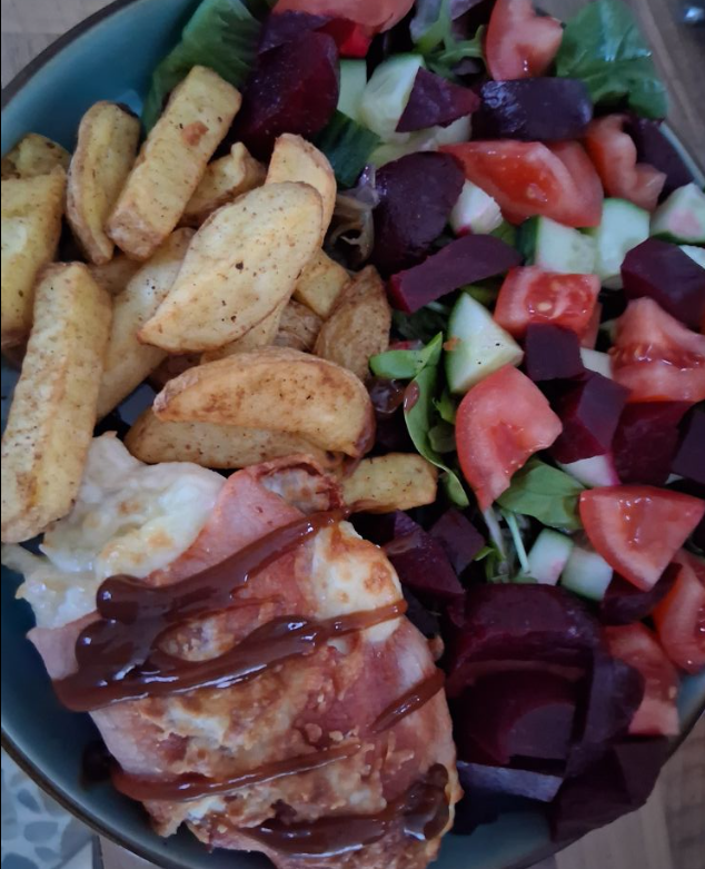 D- cold chicken (P) , SW chips (F), stir fry veg (S)