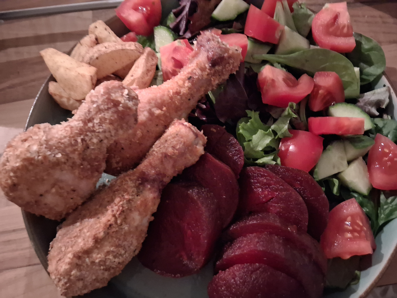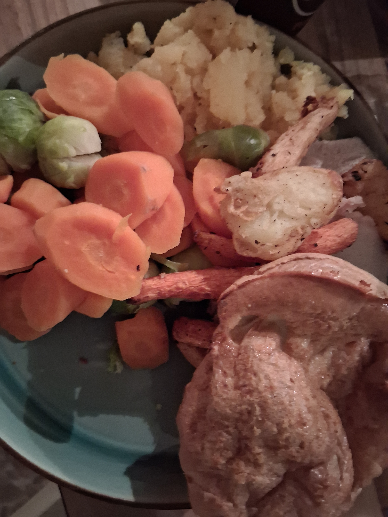 D - roast chicken, roast potatoes, roasted BNS/red onion/carrot - P, free, S