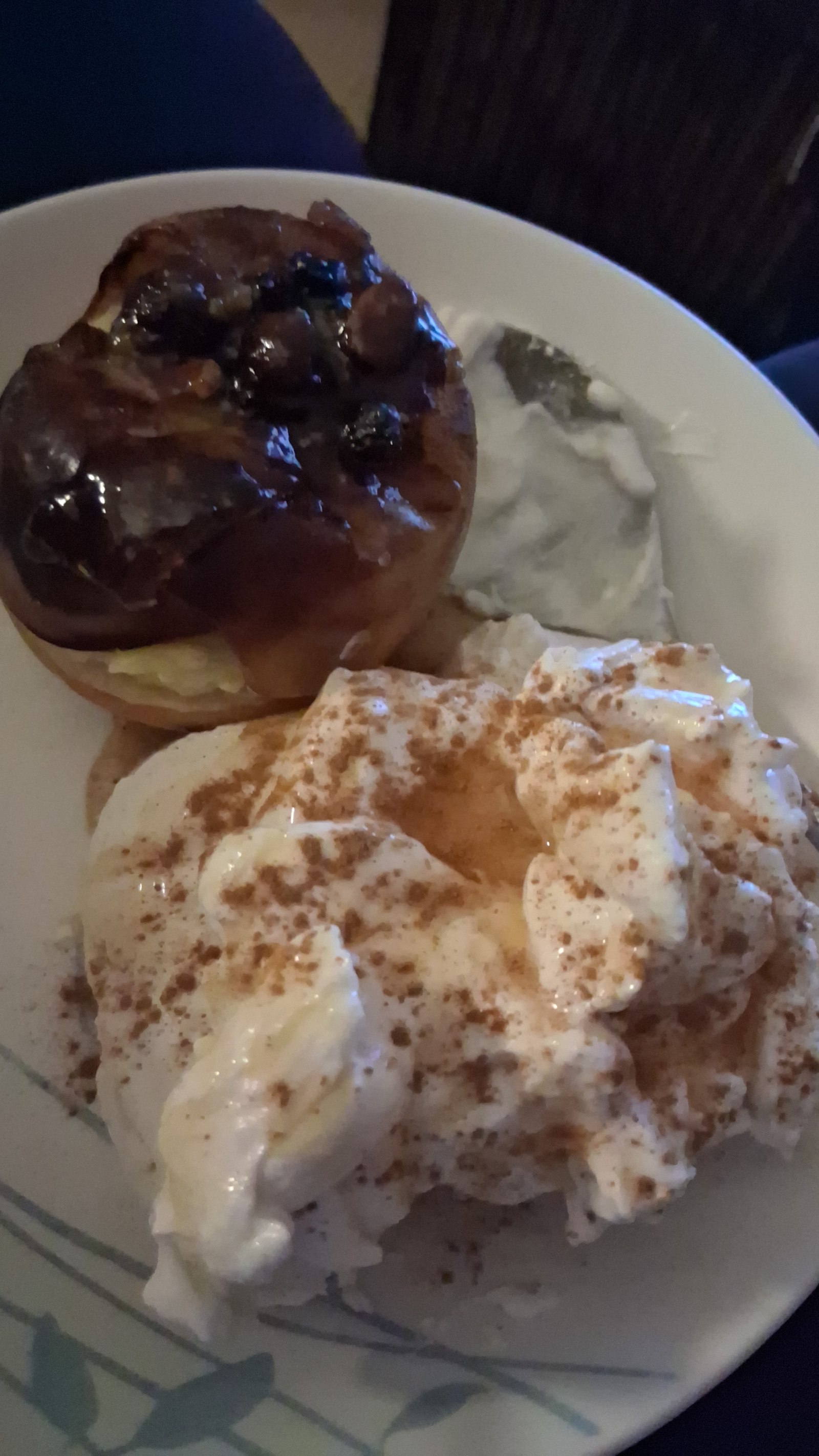 Baked apple and mincemeat , hexb, cinnamon ice cream.