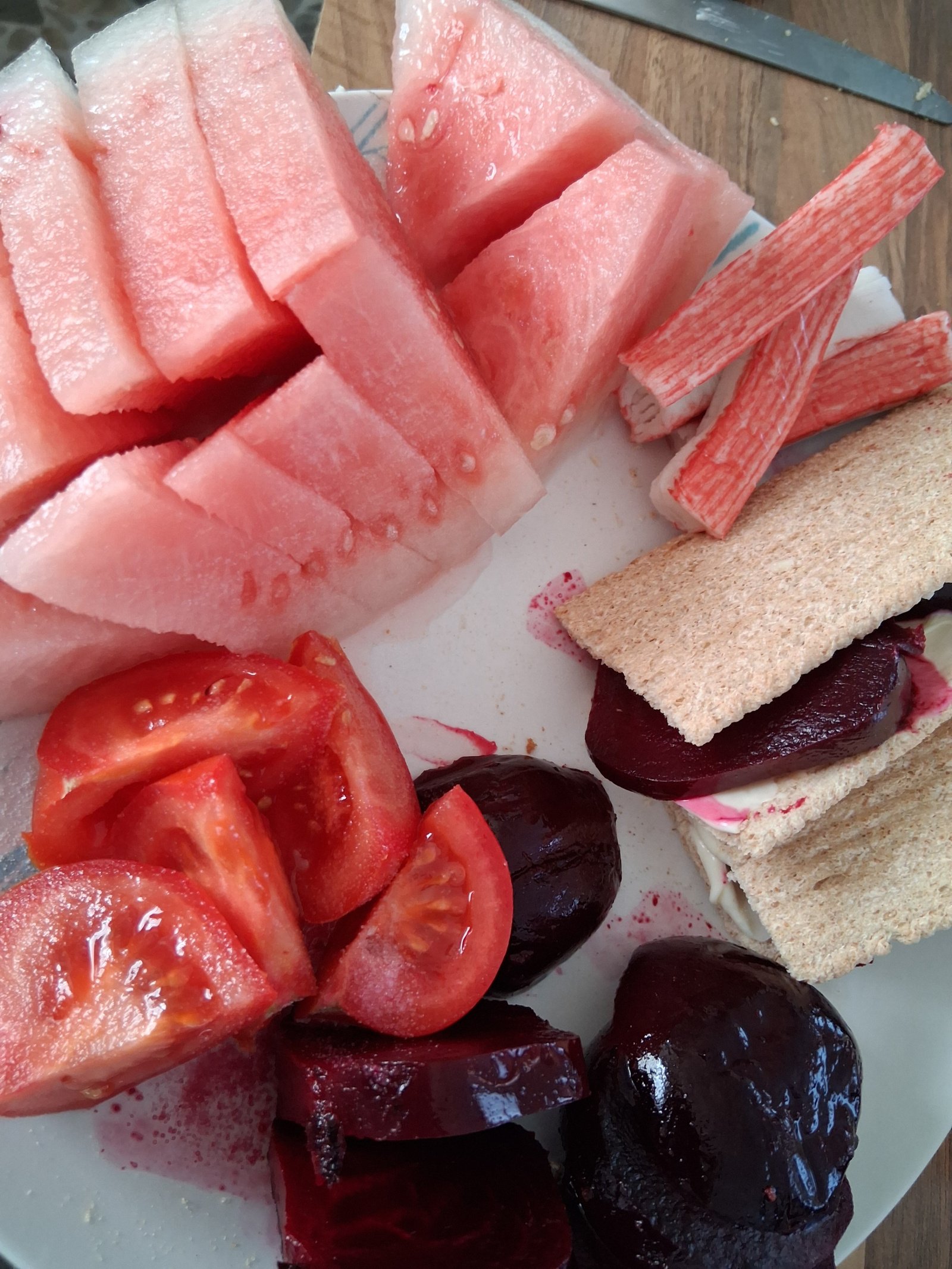 Food today picky, plate, oh and my watermelon is anemic 🤣