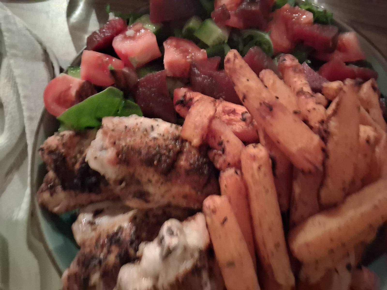 I had cereal HEXB, yoghurt and mango for breakfast, lentil soup for lunch and dinner is cod loin, hasselback potatoes, carrots, broccoli and sweetcorn.0 -