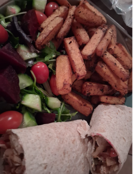 Tea was Fajita in wrap, hexb and half hexa.