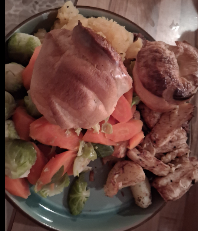 Tea, roast beef , cauli cheese 3 syns, yorkies 2 syns and they turned out banging this week ๐๐