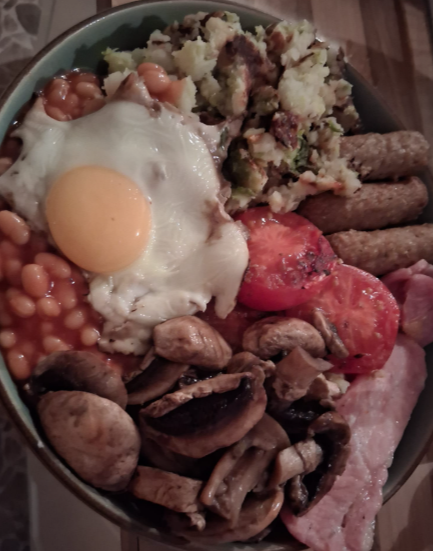 I made a huge casserole yesterday and there's enough for tonight's dinner with some fresh veg on the side . I had bubble and squeak for lunch @bubbs with cold meat and pickles. Breakfast was porridge and fruit.