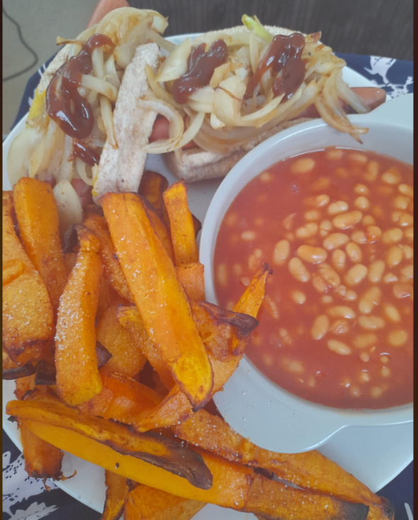 A goodish day today. Went to the allotment early doors - had a protein bagel and poached egg before I left. Then HM veg soup for lunch made using the Olio Med veg selection I got on Friday night. I roasted it and chucked in another couple of small yellow peppers, added red lentils, veg stock cube and water to the soup maker. Made 4 portions and it's a lovely consistency.