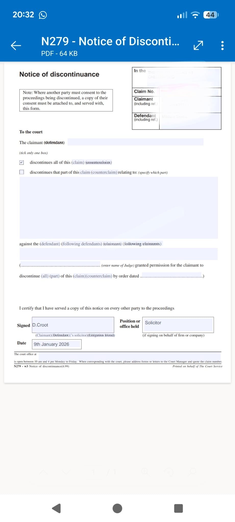 Here's a copy of the redacted form