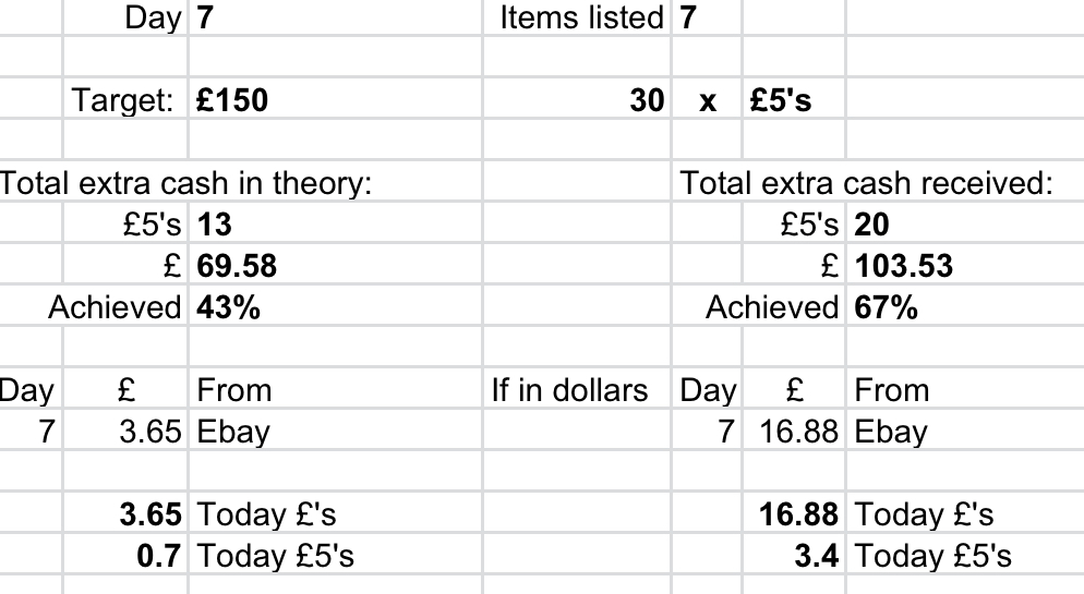 In terms of £5’s, today has been better than yesterday, though still pretty low on the effort put in from me. I did list and sell a thing though! Plus the £16.88 came in from the ebay sale a few days ago. 😁 That’s already over £100 cash in so far this month!