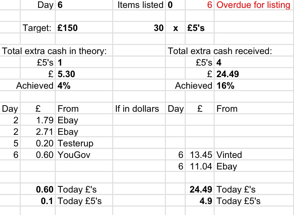 How's the £5 challenge going, or is that on hold until you are feeling better