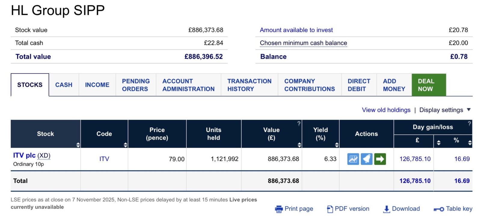 And I doubt the FTSE All Share TR offers me the possibility of a high value corporate action like ITV does.Yes I am running higher risk, but therefore I have the opportunity for higher reward. This is my choice and TBH if I’d only ever invested in FTSE index trackers I doubt I’d be where I am today.
