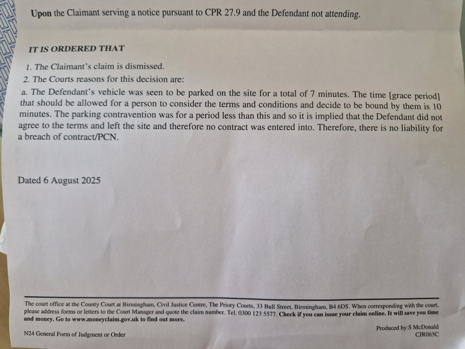 They are wrong about ten minutes observation period though... the judge has that wrong,PRIVATE 'PCN'? DON'T PAY BUT DON'T IGNORE IT (except N.Ireland).