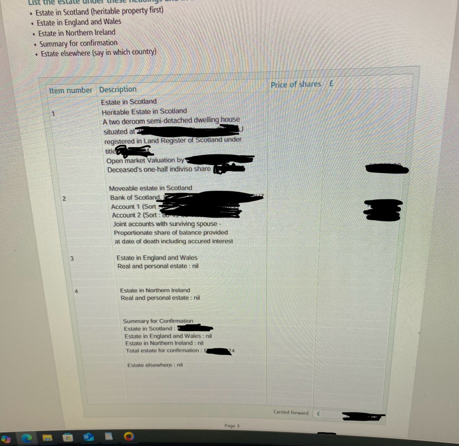 Also in relation to the property value can I use an online Zoopla valuation and if so do I document this in the inventory.