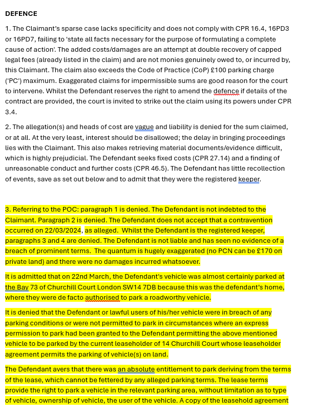 Defence looks good for a residential case.If you were the driver you could say so, and remove paragraph 9 if you need to remove something to make it fit in MCOL.PRIVATE 'PCN'? DON'T PAY BUT DON'T IGNORE IT (except N.Ireland).