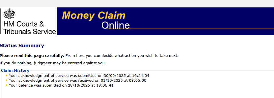 For now I have done the Aknowledgment of Service (AoS) on the MCOL platform today on 30th September as per your advice. This is all new for me so I appreciate all the support.