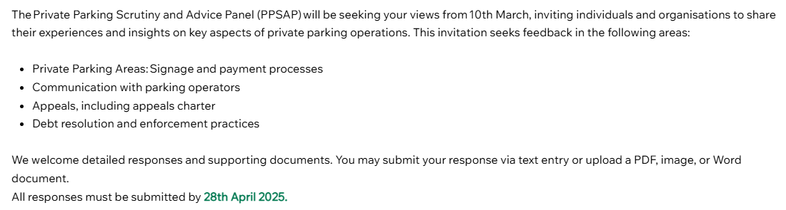 PRIVATE PARKING SCRUTINY AND ADVICE PANEL FEEDBACK