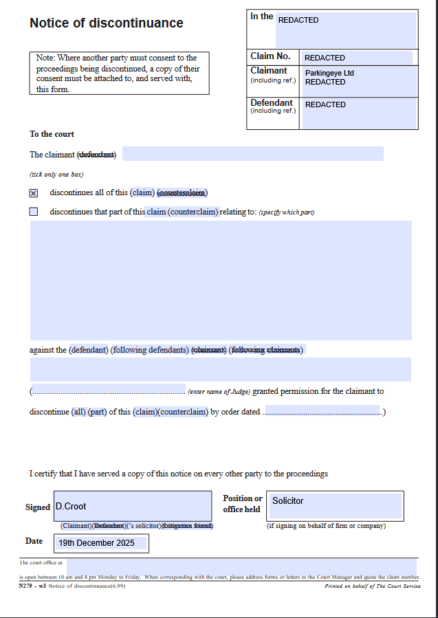 Thrilled to be shot of these manure-munchers. They've caused a significant amount of suffering, which has set my SO back significantly. Not that that's of any concern to them.Out of interest, their N279 notice doesn't actually appear to have been completed in full... Is this of any consequence? Is it worth a follow-up with them to make sure they've got their ducks in a row, and that this is truly a dead case?I'd just like to take a moment to once again thank you all for your support through the months this has dragged on. What we are all witness to here on the forum is a bona fide public service, and to have access to the annals of wisdom contained here, without a penny changing hands, is (quite frankly) bonkers. I am most humbled.I think this one is ready for the discontinuation thread!3 -