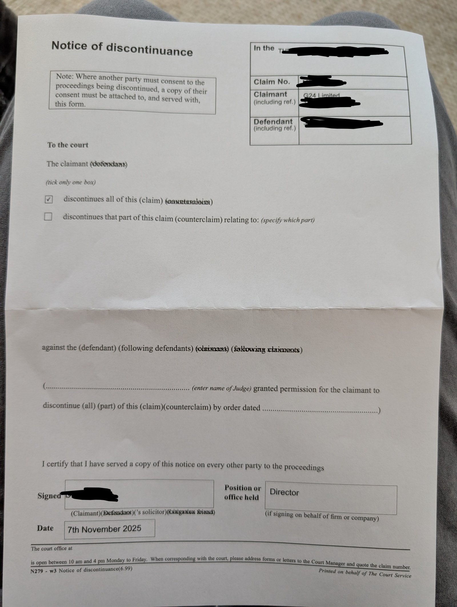 Yay! Congrats. Expected but good news!ohjessydontbehasty said:Absolutely chuffed with this notice of discontinuance that's just come through the post.