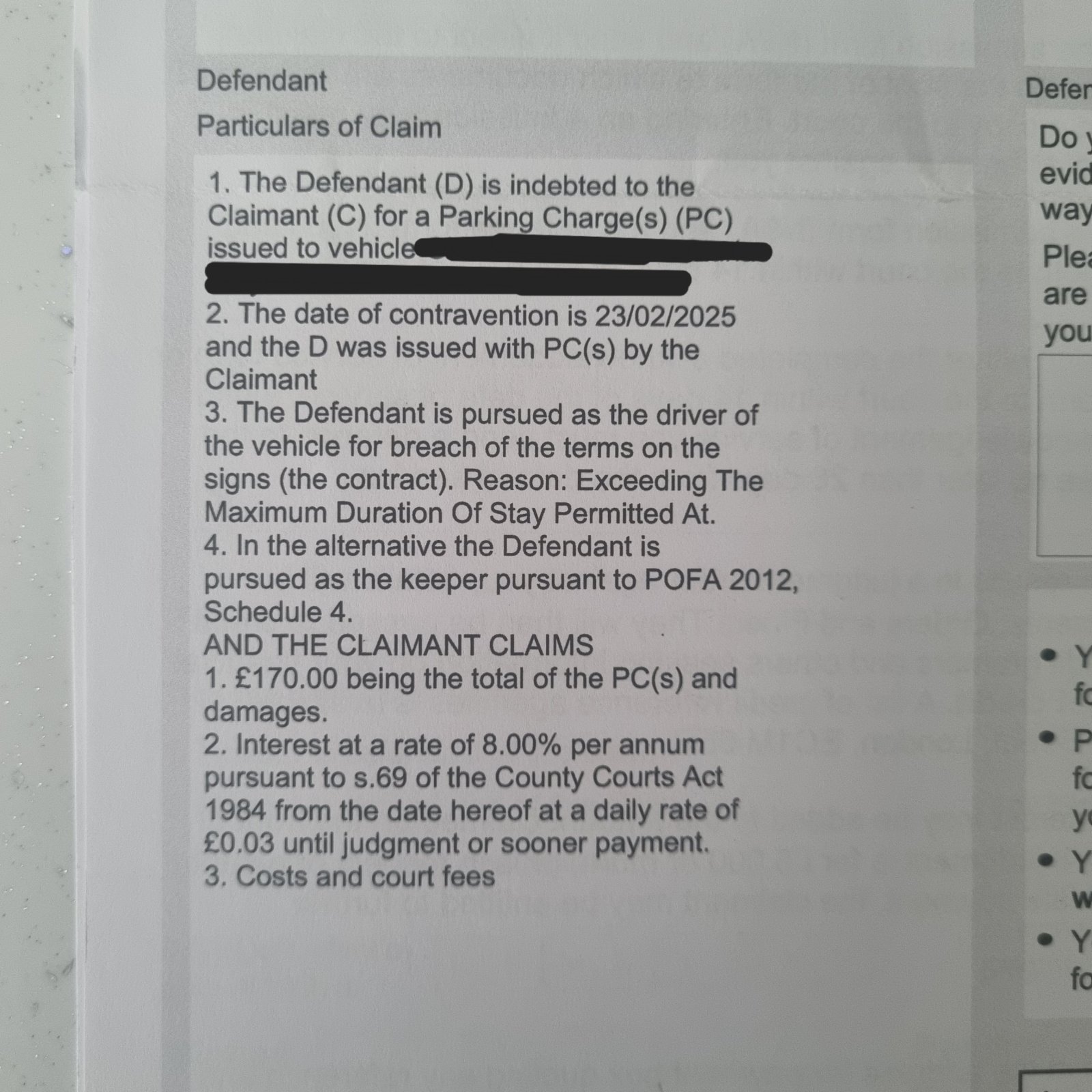 The terms and conditions of the car park are displayed in prominent locations throughout the car park. Any vehicle found in contravention of these terms and conditions is subject to a Contractual Parking Charge Notice. Vehicles entering and exiting the car park are monitored and details of their registration number and time of entry/exit are recorded. Your vehicle was logged entering the car park on the 00 MONTH 2025 at 0000 and exiting 00 MONTH 2025 at 0000 (13 mins over the 90 mins). Photographic evidence of the breach of contractual term is provided on your Contractual Parking Charge Notice.