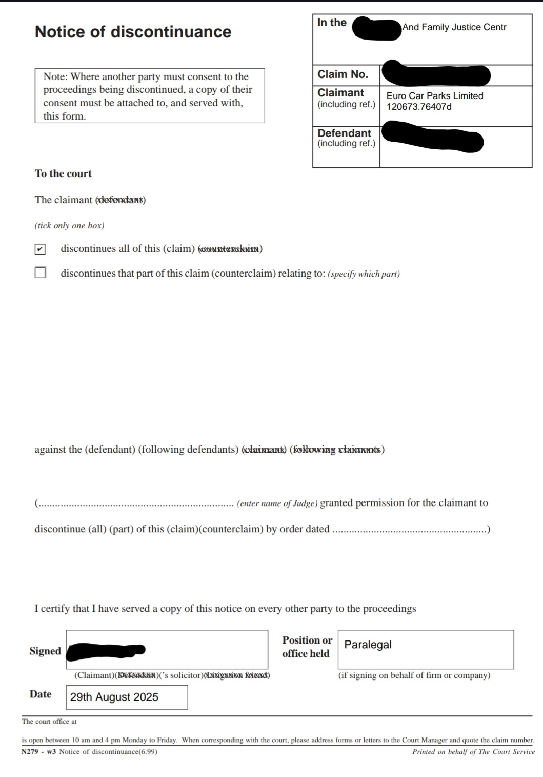I just wanted to update you with the news that, as expected, DCB Legal have discontinued court proceedings.