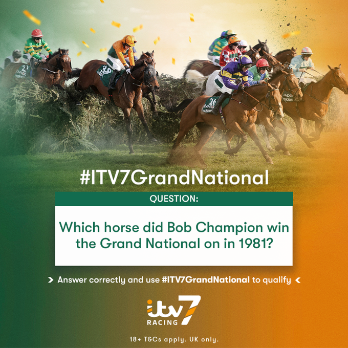 Follow @itv7& reply to THIS post with the answer to the question & use #ITV7GrandNational 📲