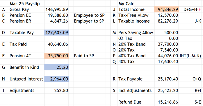 HMRC have clearly treated the pension contribution as being made using the relief at source method, with the £35,750 being treated as the gross amount not the net amount.tetrarch said:Attached are pics of the P45 (no P60 as change of company)